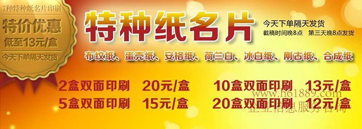 廠家印刷彩頁|畫冊|包裝|信封|手提袋|名片|利是封|紅包|無碳聯(lián)單|表格等相關(guān)宣傳物料,燙金、燙銀、凹凸、UV、啤異形等厚道加工。優(yōu)質(zhì)服務(wù) 價格公道!彩頁印刷低至160元/500張(A5)157克銅版紙,名片印刷低至2.8元/盒,300克銅版紙。專業(yè)聯(lián)單印刷價格低至0.9元/本,高檔名片:布紋紙、蛋殼紙、安格紙、荷蘭白、冰白紙、剛古紙、合成紙、PVC細磨砂、粗磨砂、啞面閃金銀、光面閃金銀名片,名片燙金、燙銀、凹凸、UV、啤異形、打孔、切圓角等名片后道加工。