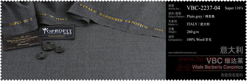 杜普菲:100%進(jìn)口面料、生產(chǎn)地:意大利、顏色圖案:純灰色、成份:100%羊毛、VBC維達(dá)菜:高級西裝面料