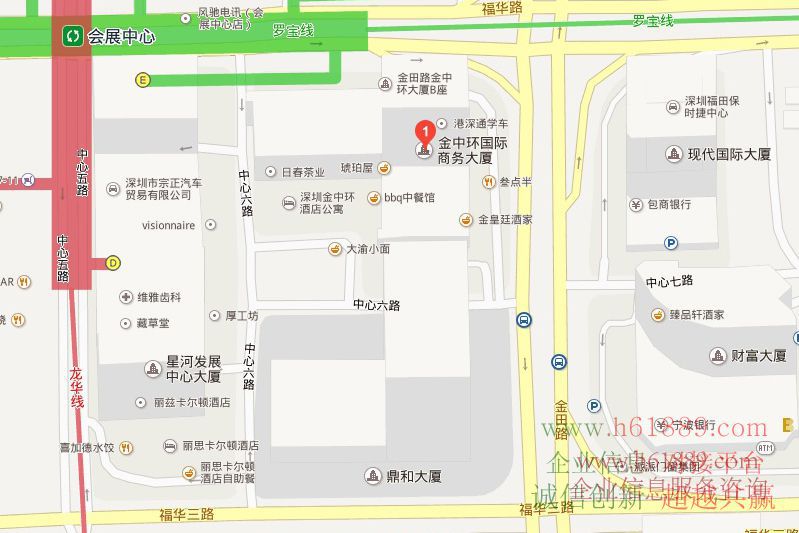 大廈地址:金中環(huán)商務(wù)大廈位于深圳市福田區(qū)金田路3037號 負一樓商鋪 | 聯(lián)系電話:0755-61967921 |