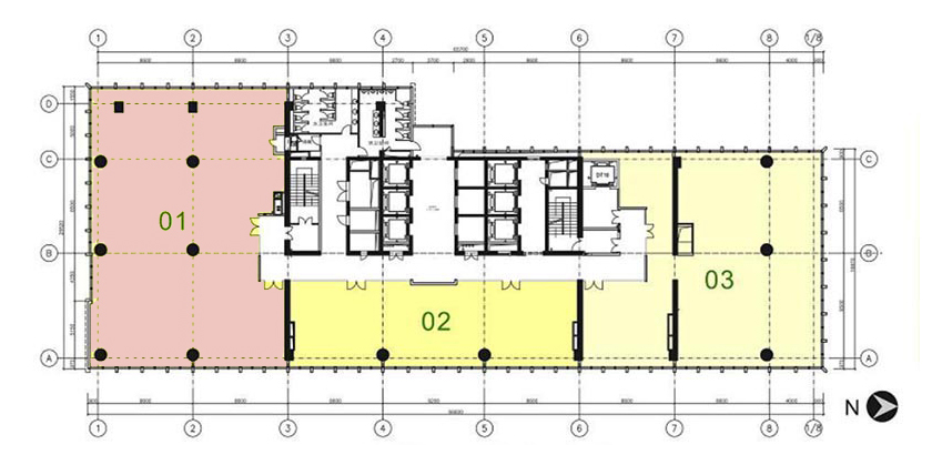 租賃面積:79平米、106平米、172平米、268平米、365平米、387平米、573平米、679平米、921平米、寫字樓標(biāo)準(zhǔn)層面積:1573平方米、可以任意組合