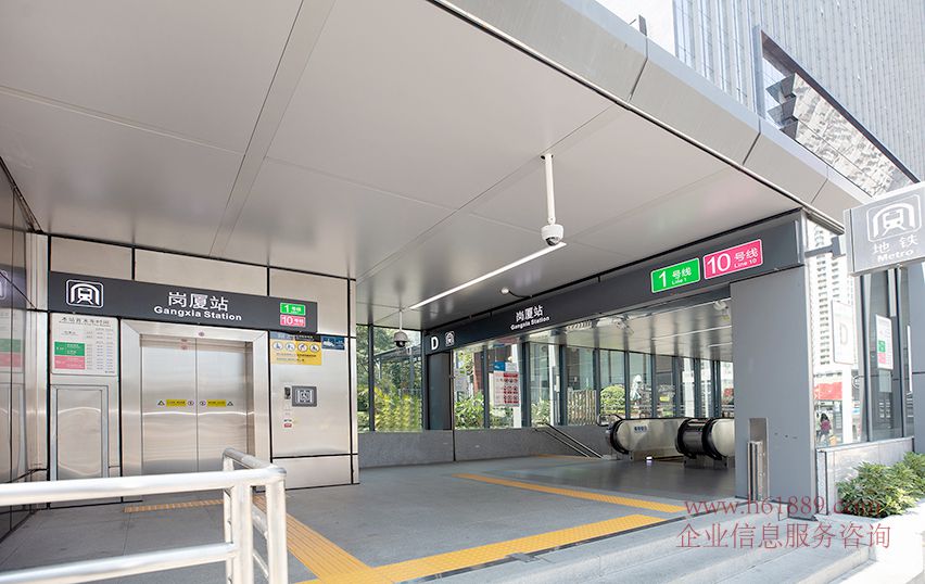 地鐵:地鐵1號(hào)線(羅寶線)與地鐵10號(hào)線(坂田線)崗廈地鐵站 D出口