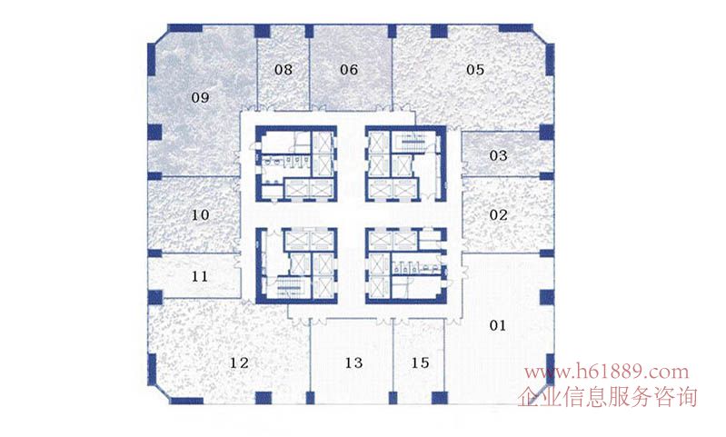 租賃面積:257平米、270平米、337平米、510平米、611平米、678平米、766平米、870平米、929平米、1269平米、1369來說、1568平米、整層面積約:1725平米/層