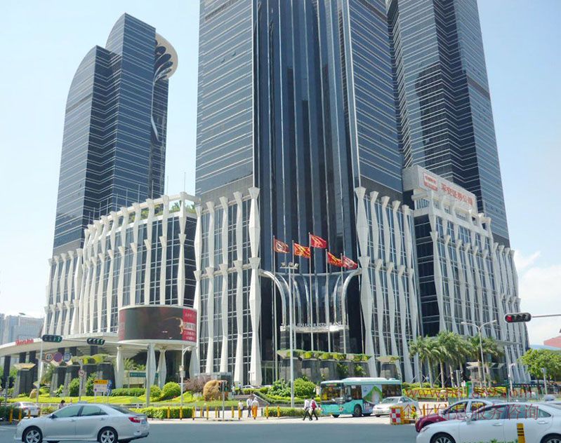 大中華國際交易廣場、位于深圳中心區(qū)的軸心位置、總建筑面積31萬平方米、該項目自身配有2000平方米的直升機停機坪、17000平方米樓前綠化廣場、20000平方米的地下購物中心、還有容納1000多人就餐的宴會大廳、廣場擁有優(yōu)越的周邊環(huán)境、北面與市民中心相望、與20多萬公頃的中心區(qū)綠化廣場相抱、南面是26萬平方米的深圳會展中心、地鐵一號線和四號線在廣場的正下方交匯、廣場與地鐵網(wǎng)實現(xiàn)零距離無縫對接、大中華國際交易廣場始建于1996年7月、于2005年12月18日完工、并舉行盛大的開盤儀式、大中華國際交易廣場、是由黃世再掌陀的大中華國際集團(深圳)有限公司全資投資的一個大型項目