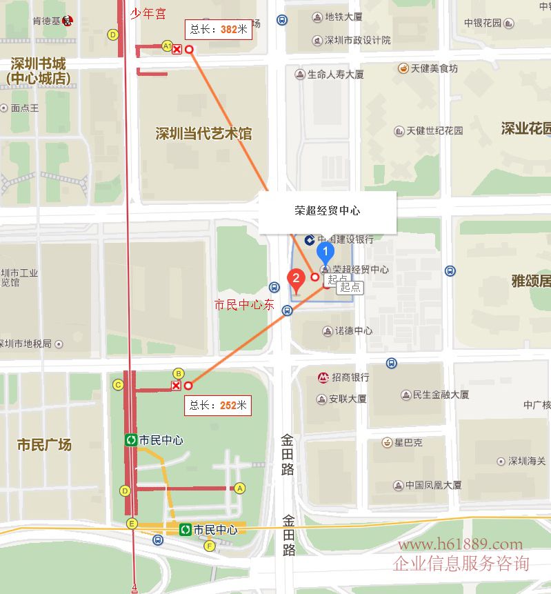 地鐵站:市民中心:地鐵2號線(蛇口線)與地鐵4號線(龍華線)交匯處、少年宮地鐵站:地鐵4號線(龍華線)與地鐵3號線(龍崗線)交匯處