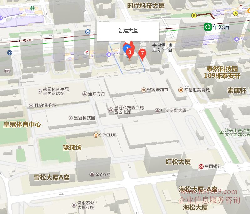 創(chuàng)建大廈位于深南大道南側(cè)、坐落于深南大道地標(biāo)招行大廈正對面、數(shù)十條公交線路經(jīng)過本項目、地鐵車公廟站近在咫尺、交通非常發(fā)達(dá)、是高科技、智能化的甲級寫字樓