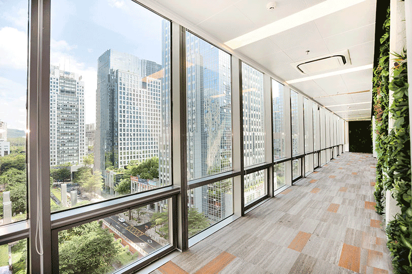 陽光生態(tài)中庭:投行大廈核心筒分列大廈東西兩側(cè)、中部形成通風與透光的內(nèi)部中庭、陽光和自然風可直通大廈內(nèi)部中央天庭、足不出戶就可享受大自然無私的陽光和清新空氣