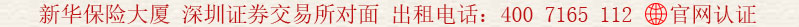 大廈地址:新華保險大廈深圳市福田區(qū)民田路與福華路交匯處 低區(qū) | 聯(lián)系電話:0755-61967921 |