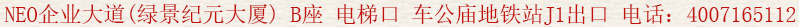 NEO企業(yè)大道(綠景紀元大廈) B座 電梯口 車公廟地鐵站J1出口 電話
