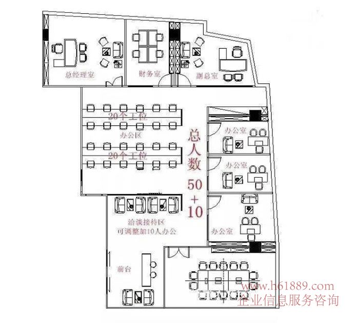 出租戶型:6個(gè)辦公室、一個(gè)廳、電梯口