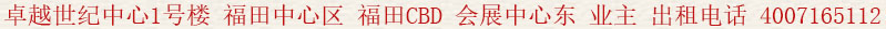 大廈地址:卓越世紀中心1號樓位于深圳市福田區(qū)金田路2030號 低區(qū) | 聯(lián)系電話:0755-61967921 |