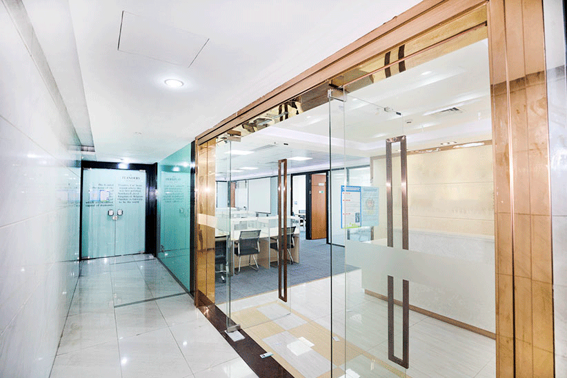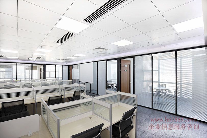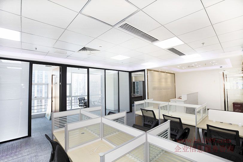 3、物業(yè)位于大廈高層、大氣的雙開(kāi)玻璃門(mén)、里面有5個(gè)隔間、1大廳、東北采光、戶型方正、全辦公家私、近電梯口