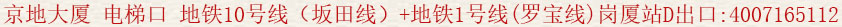京地大廈 電梯口 地鐵10號線(坂田線)+地鐵1號線(羅寶線) 崗廈站D出口