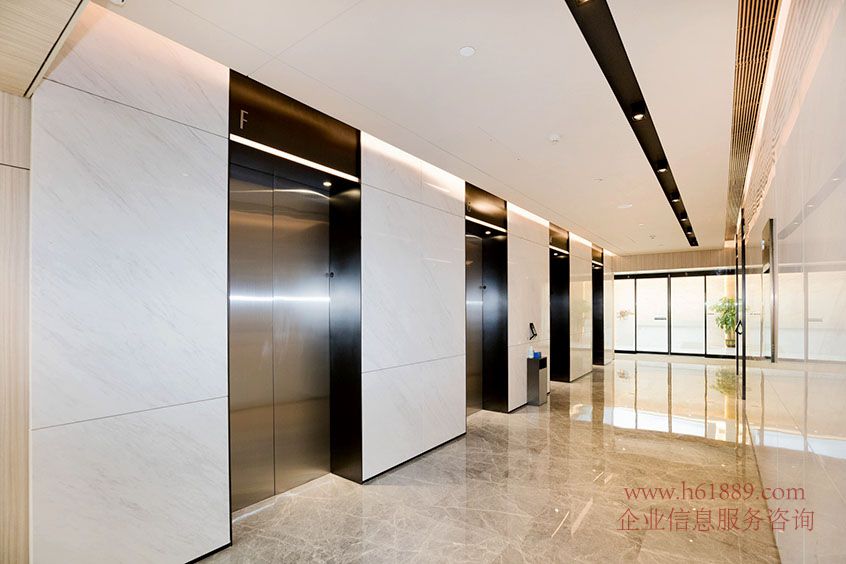 首層大堂電梯廳:造型天花、電梯廳墻面主要為魚肚白,電梯轎箱墻面為5mm鏡底夾絲玻璃及10mm夾絲玻璃