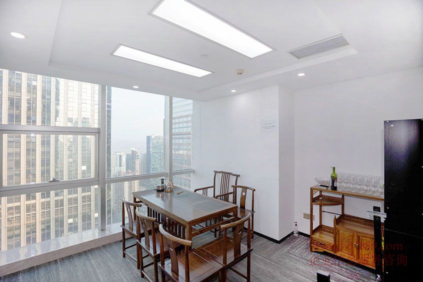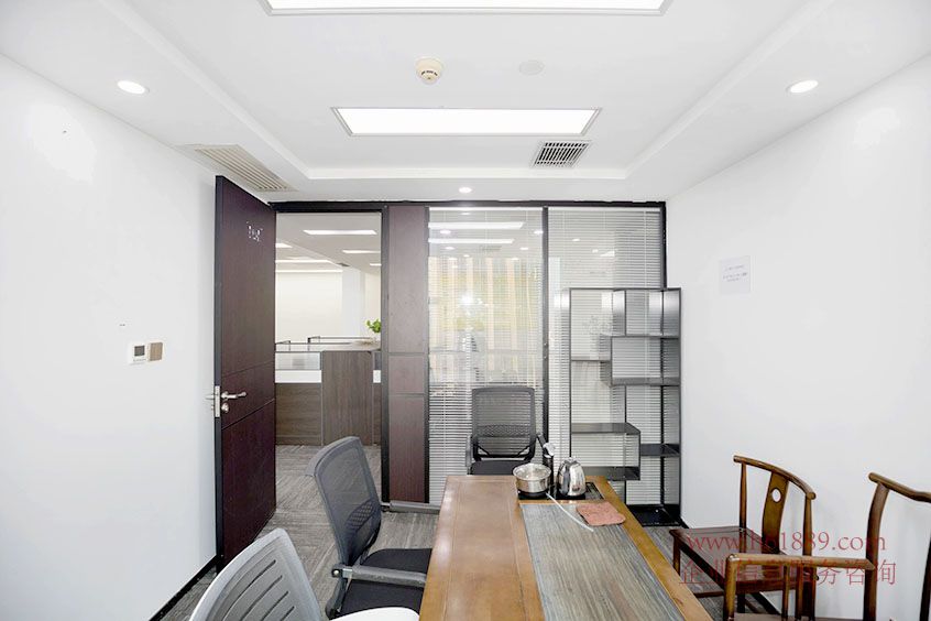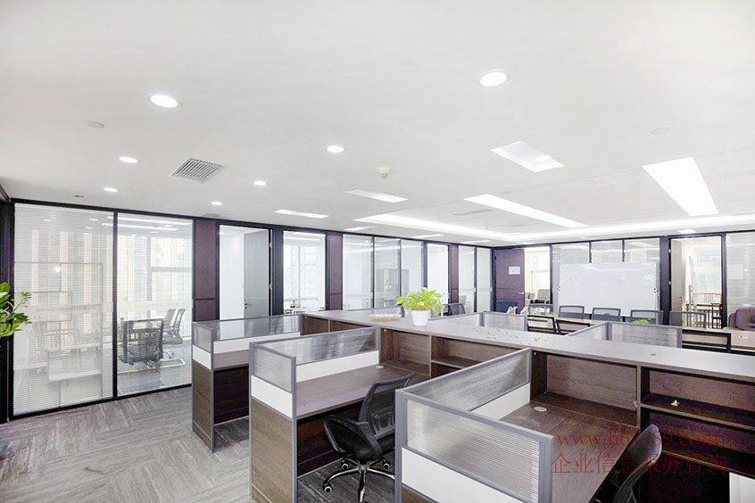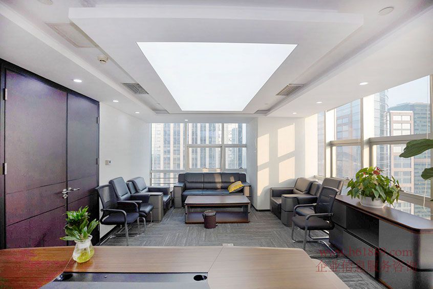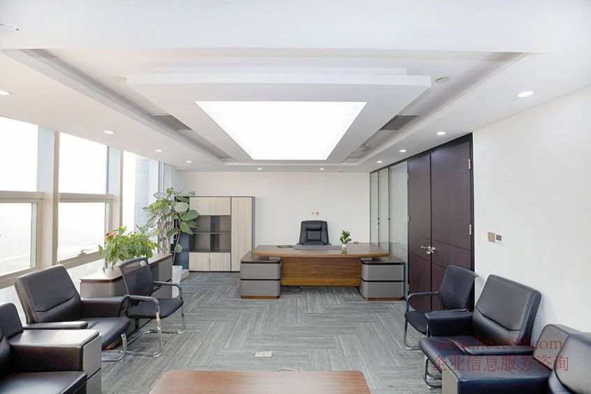 3、物業(yè)位于大廈高層、大氣的雙開玻璃門、里面有5個(gè)隔間、1大廳、東北采光、戶型方正、全辦公家私、近電梯口