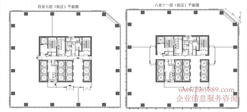四至七層(低區(qū))平面圖 八至十一層(低區(qū))平面圖
