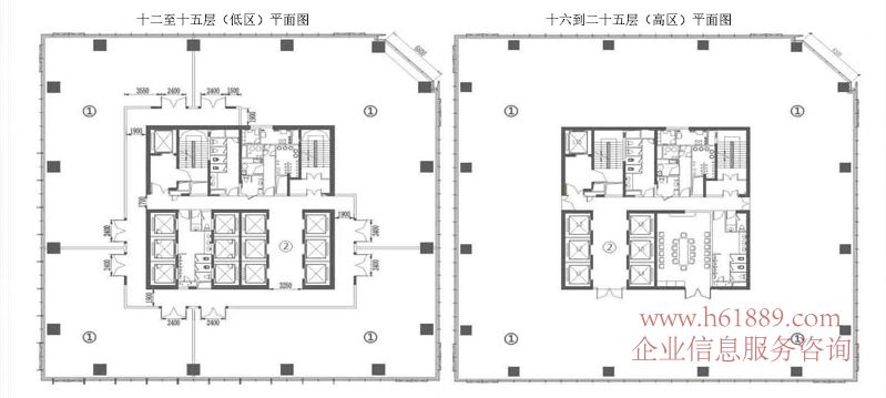 十二至十五層(低區(qū))平面圖 十六到二十五層(高區(qū))平面圖