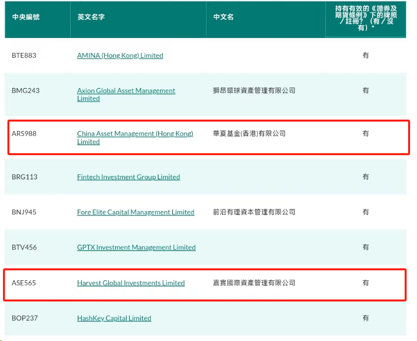 2024年4月10日:香港證監(jiān)會在官網(wǎng)更新了虛擬資產(chǎn)管理的基金公司名單,新增了嘉實國際和華夏基金(香港),意味著這些公募基金在原有的傳統(tǒng)資產(chǎn)管理業(yè)務(wù)上,新增虛擬資產(chǎn)管理業(yè)務(wù),這也是中國頭部基金公司香港子公司的首次獲批