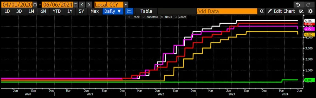 2024年6月7日:加拿大央行宣布將基準利率從 5% 下調(diào)至 4.75%,這是今年以來加拿大央行第二次降息
