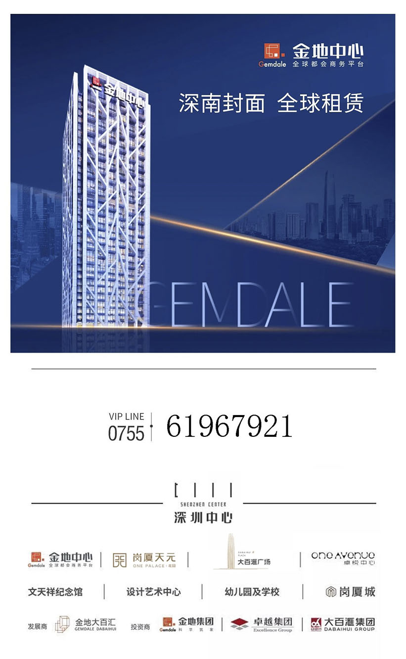 金地中心項目簡介【市民中心東南面:深南大道第一排】項目位于深圳中心區(qū)東南側:北臨深南大道、南至福華三路、東西分沿彩田路和金田路、占地面積約220800平方米、開發(fā)商深圳市金地大百匯房地產開發(fā)商有限公司【是金地集團、卓越集團、大百匯集團三大集團共同成立的項目公司】