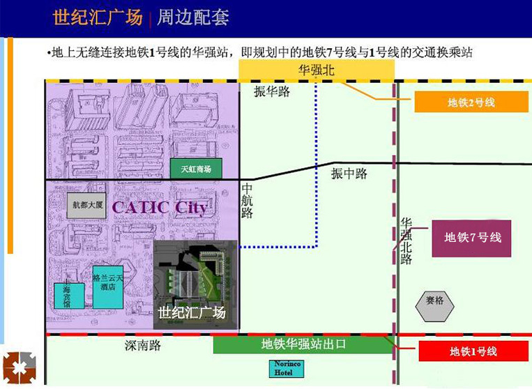 世紀(jì)匯廣場樓高48層、總建筑面積達79.000平方米、為深圳的優(yōu)質(zhì)甲級寫字樓、雄踞深圳核心地段深南中路、勢必帶動華強北蛻變成國際級新CBD商圈