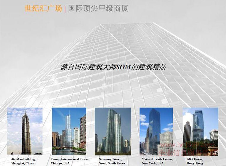 世紀(jì)匯廣場乃國際級頂尖建筑公司Skidmore、 Owings & Merrill LLP(SOM)的精心巨作、園林環(huán)境由頂尖園林設(shè)計師貝爾高林(BeltCollins)締造