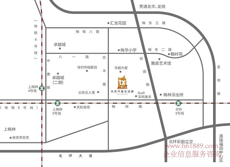 地鐵:緊鄰地鐵4號線【龍華線】、9號線【梅林線】上梅林站(J1出口300平米)。高速路:北環(huán)大道、新彩隧道、南坪快速路。公交站:第二高級技工學校、檔案中心、萬科大廈、凱豐花園