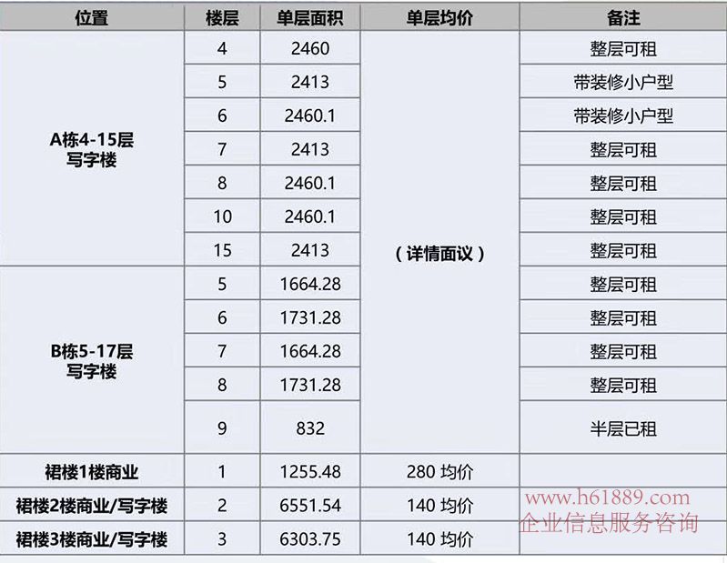 4-17樓辦公、為企業(yè)定制商務(wù)空間:4-17樓為標準寫字樓、面積為80~2500平米、分為A、B共兩棟,A棟標準層面積約2500平方米、B棟標準層面積1700平米、標準層層高達到4.2m、項目的外立面采用中空玻璃幕墻、具有高透、隔熱、隔音等特性、通透采光極致彰顯、創(chuàng)造生態(tài)、健康、節(jié)能的優(yōu)越辦公環(huán)境、塑造綠色環(huán)保節(jié)能的人性化辦公空間