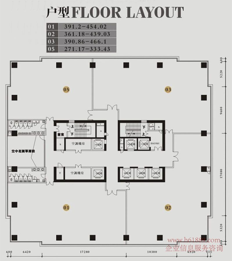 樓層面積及層高:面積:1550平/層、凈高:7-36層3.5M、37層以上3.7M