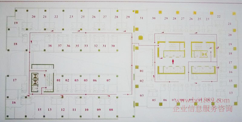 樓層布局情況:24樓以下為公寓辦公、附樓以酒店為主