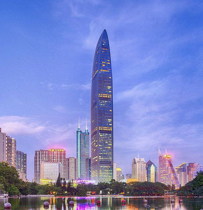 京基100大型城市綜合體項目總建筑面積602401.75m2、由京基地產(chǎn)斥資50億元打造、共100層、高度為441.8米、是世界著名的地標性建筑