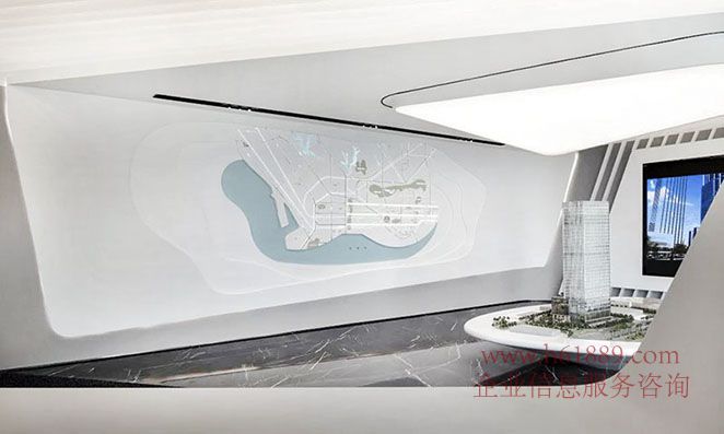 左側(cè)沙盤區(qū)特設(shè)項(xiàng)目區(qū)域背景墻及品牌廣告聯(lián)播演示,在側(cè)重客戶體驗(yàn)互動(dòng)的同時(shí)彰顯著企業(yè)品牌實(shí)力。