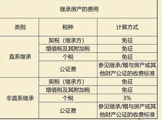 如果是直系繼承的話,契稅、增值稅及其附加稅和個稅上,統(tǒng)統(tǒng)免征,只需要支付個公證費而已。