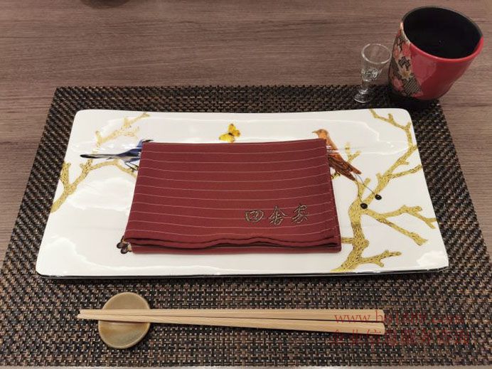 田舍家的餐具均來自日本品牌,每一個細(xì)節(jié)都非常高端用心。用餐前都會擺好餐具,筷子碟子和桌布都有自己的位置,一點都不可以錯。