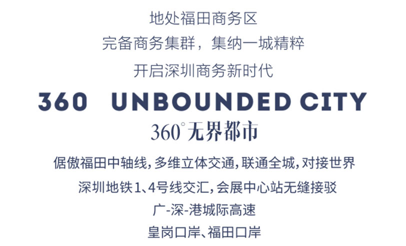 ?星河中心【星河發(fā)展中心】地處福田商務(wù)區(qū):完備商務(wù)集群,集納一城精粹、開啟深圳商務(wù)新時代、360 UNBOUNDED CITY、360無界都市 倨傲福田中軸線、多維立體交通、聯(lián)通全城、對接世界、深圳地鐵1、4號線交匯、會展中心站無縫接駁E出口、廣-深-港城際高速、皇崗口岸、福田口岸