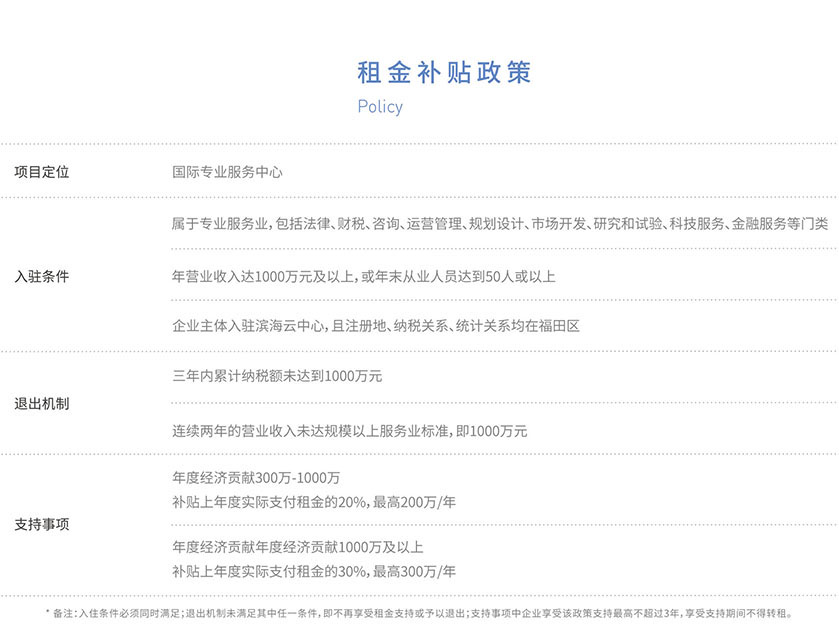 在深圳福田車(chē)公廟,有一棟新建成的5A甲級(jí)寫(xiě)字樓,除了正常的租金減免之外,還幫符合條件的入駐企業(yè)爭(zhēng)取到了20—30%的租金補(bǔ)貼,最高可達(dá)300萬(wàn)/年的租金補(bǔ)貼,它就是濱海云中心,也叫萬(wàn)科濱海云中心。