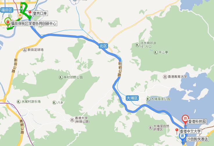 直通巴起點(diǎn)為福田保稅區(qū)市花路長(zhǎng)富金茂大廈深港協(xié)同創(chuàng)新中心,終點(diǎn)為香港科學(xué)園