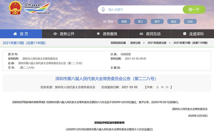深圳經(jīng)濟(jì)特區(qū)城市更新條例、重磅來(lái)襲、自2021年3月1日起施行