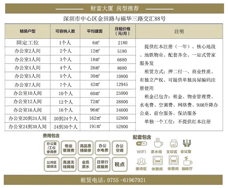 財富大廈 商務(wù)辦公室(商務(wù)中心)房型推薦