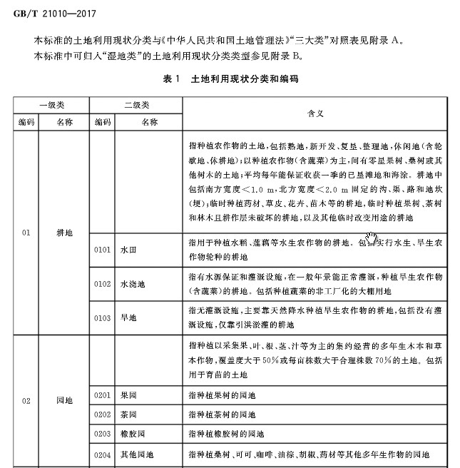 《土地利用現(xiàn)狀分類》中詳細的類別介紹