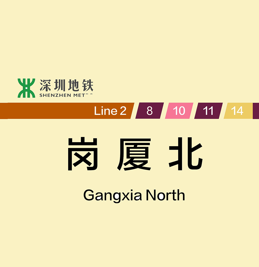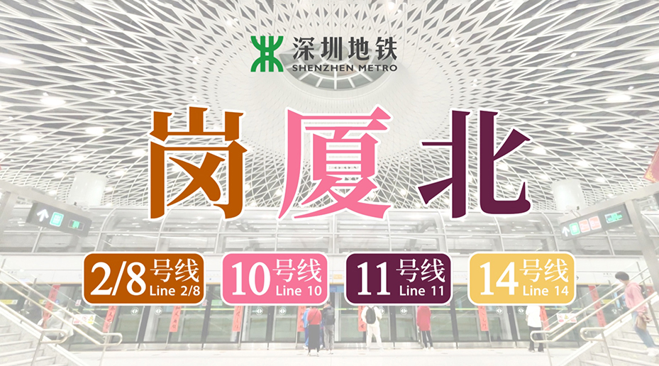 崗廈北站(GangxiaNorth Station)深圳之眼:崗廈北交通樞紐:深圳地鐵2號(hào)線【蛇口線】、地鐵8號(hào)線【鹽田線】、深圳地鐵10號(hào)線【坂田線】、深圳地鐵11號(hào)線【深圳地鐵機(jī)場(chǎng)快線】和深圳地鐵14號(hào)線【東部快線】的換乘站
