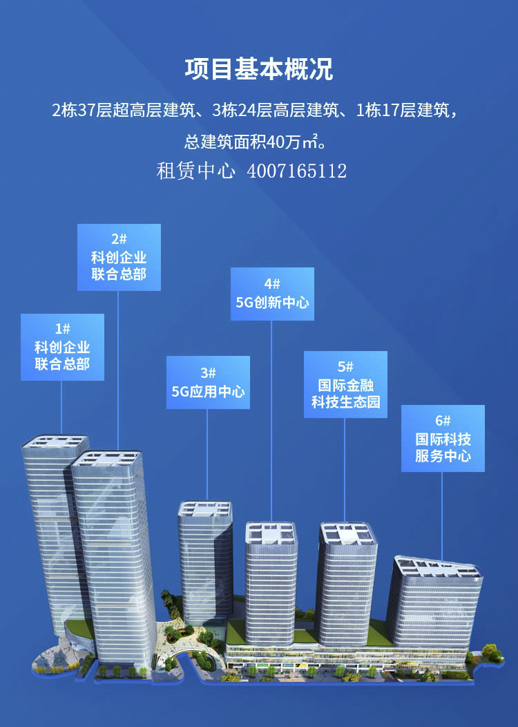 新一代信息技術產業(yè)園、2棟37層超高層建筑、3棟24層高層建筑、1棟17層建筑、總建筑面積:40萬m2
