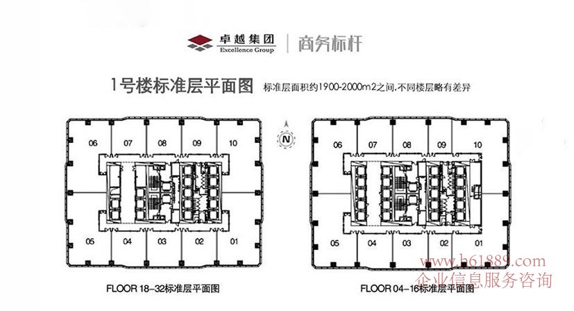卓越世紀中心1號樓樣板房 卓越世紀中心1號樓 開發(fā)商出租 PLOOR 18到32標準層平面圖 PLOOR 14到16層標準層平面圖
