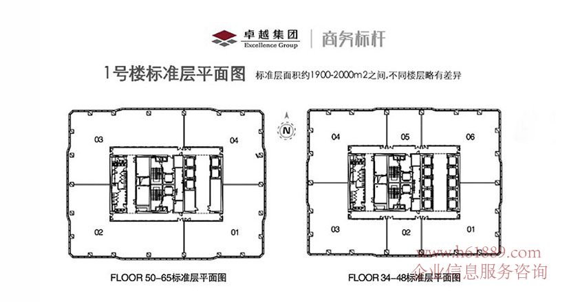 卓越世紀中心1號樓樣板房 卓越世紀中心1號樓 開發(fā)商出租 PLOOR 50到65層標準層平面圖 PLOOR 34到48標準層平面圖