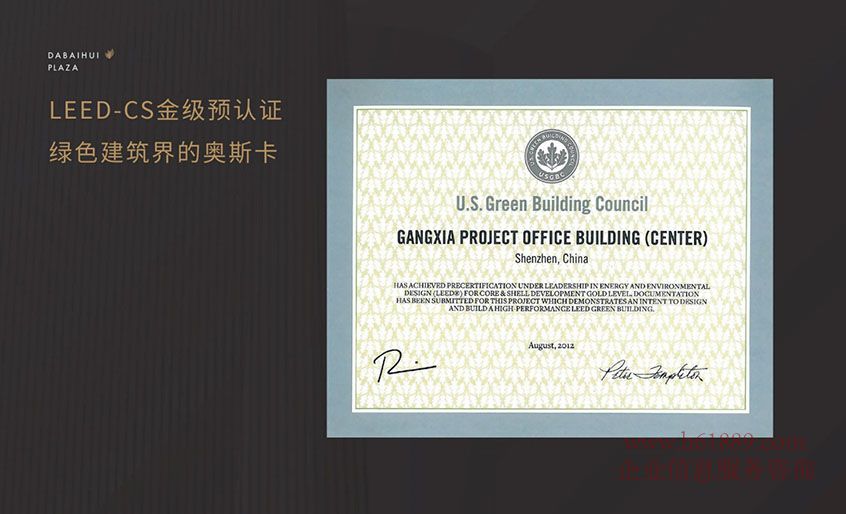 私募證券大廈【大百匯廣場(chǎng)】LEED-CS金級(jí)預(yù)認(rèn)證、綠色建界的奧斯卡