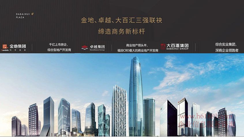 金地、卓越、大百匯三強(qiáng)聯(lián)袂、締造商務(wù)新標(biāo)桿:金地集團(tuán):千億上市房企、綜合型地產(chǎn)開發(fā)商、卓悅集團(tuán)、商業(yè)地產(chǎn)領(lǐng)頭羊、福田CBD最大的商業(yè)地產(chǎn)開發(fā)商、大百匯集團(tuán):綜合實(shí)業(yè)集團(tuán)、深商企業(yè)領(lǐng)跑者