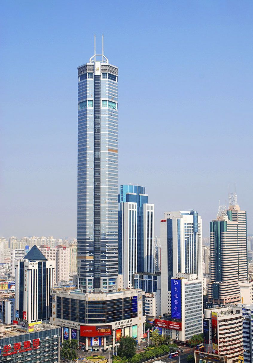 深圳賽格大廈72層,全高度(天線鋼針端高)345.8米。采用鋼管混凝土結構。這種鋼管混凝土結構有著很高的科技含量,也是當時國內最早采用的高科技技術。這使得大廈柱子變得苗條起來,地面空間也省出來了。