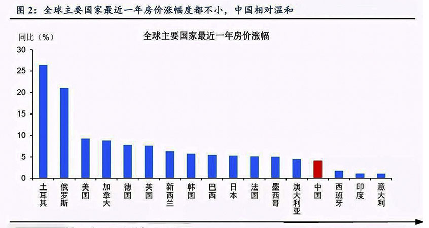這在各國(guó)的房?jī)r(jià)漲幅上就有直接體現(xiàn),去年全球89%國(guó)家的房?jī)r(jià)都在上漲,這一比例為2000年以來最高,土耳其、俄羅斯尤其上漲超過20%