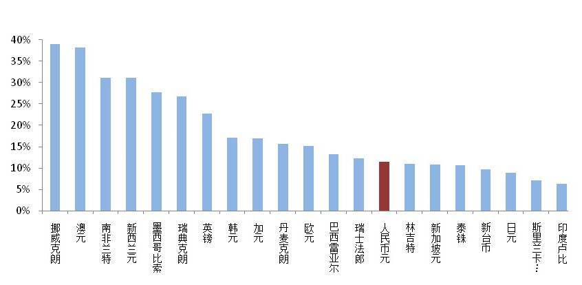 圖:去年各國(guó)貨幣相對(duì)美元最大升值幅度