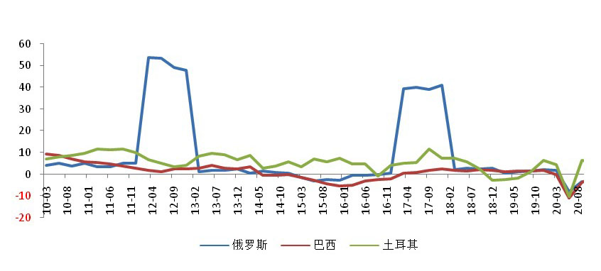 其次,為了抑制泡沫,穩(wěn)定資本流出,新興市場(chǎng)國(guó)家也不得不率先啟動(dòng)加息,防止出現(xiàn)美元過快回流—本幣貶值—惡性通脹—本國(guó)加息—資產(chǎn)價(jià)格下跌—外債暴露的惡性循環(huán)預(yù)期