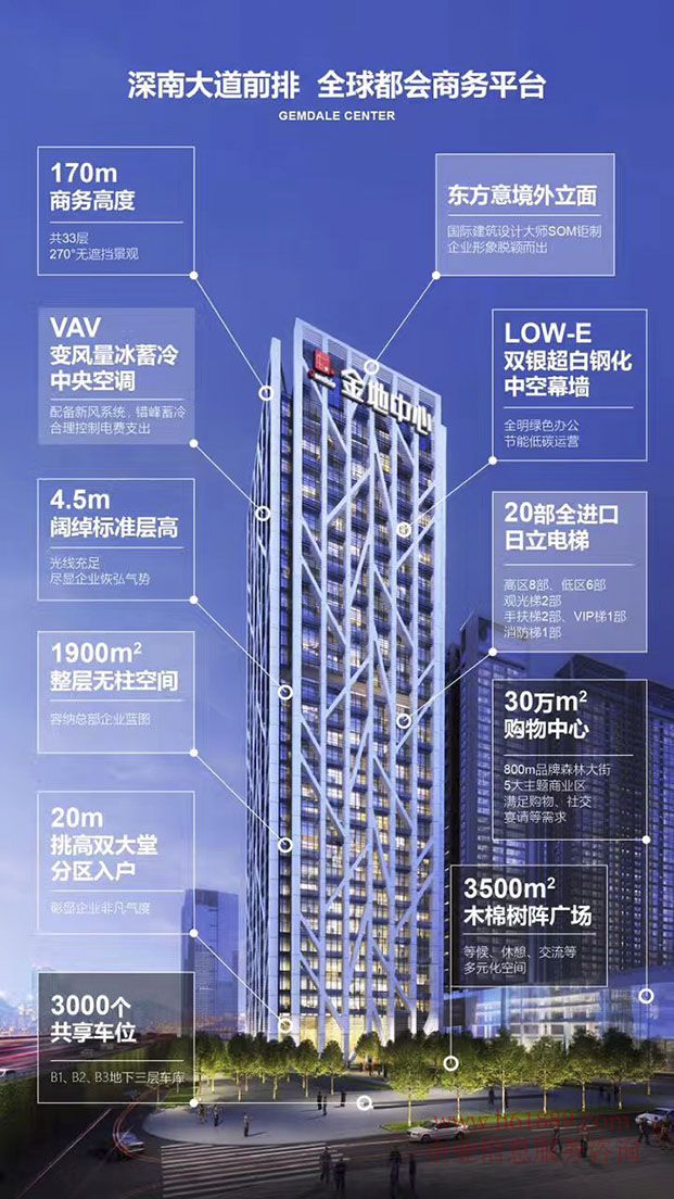 金地中心:CBD中軸之上屹立全球商務(wù)首排、矗立深南大道首排、城市中軸之上、盡覽CBC格局精髓、得天獨(dú)厚的深南大道首排影響力、持續(xù)擴(kuò)大品牌知名度、盡顯國際名企風(fēng)范